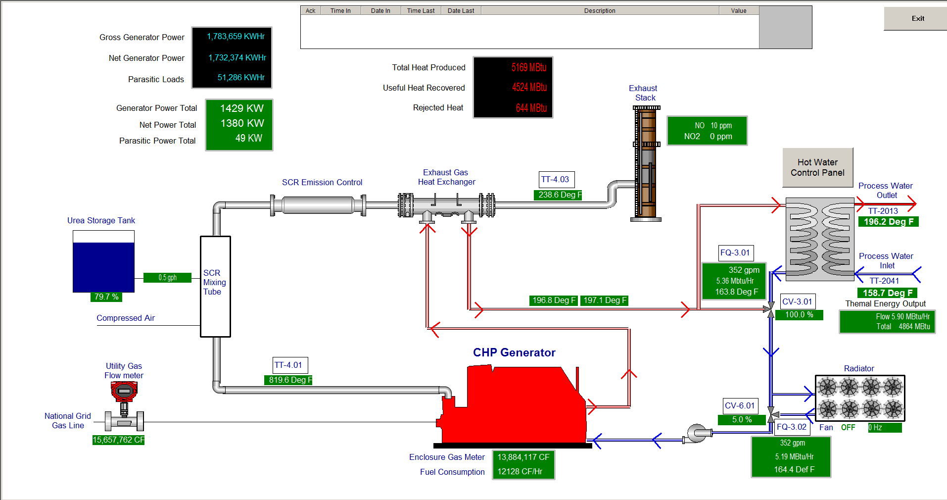 We now recover heat from the motor and engine exhaust and are using that heat to reduce our boiler use. During the summer months the CHP generates enough heat to operate all three odor control coils!